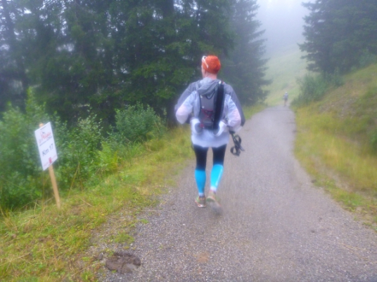 Weit unter uns liegt die Grasgehrenhütte. Hier ist bei Km 19 das erste Zeitlimit. 3.15 Stunden dürfen es hier sein. Wer später kommt, wird aus dem Rennen genommen. Ich bin 10 Minuten langsamer als im letzten Jahr. Das laufen in der Kälte ist nicht so meine Sache. Ich habe Probleme, in den Rhythmus zu kommen.