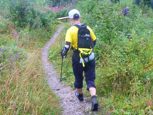 Viele Wanderer sind hier oben auf breitem Wanderweg unterwegs. Dies liegt sicher auch an der Söllereckbahn. Mit der Bahn kann man bequem herauf kommen und nach Riezlern hinab wandern.