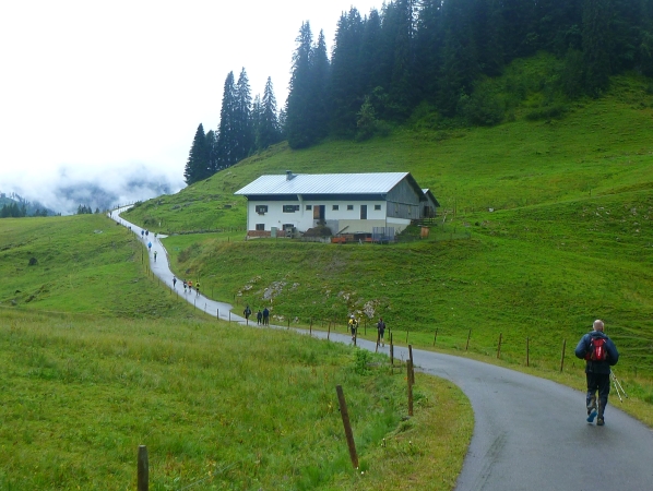 Wir verlassen die Bundesrepublik Deutschland und passieren die Grenze zu Österreich. Das Kleinwalsertal nimmt uns auf. Uns erwartet am Gasthof Hörnlepass wieder eine Vollverpflegung. Hierhin konnte man auch Wechselkleidung schicken.