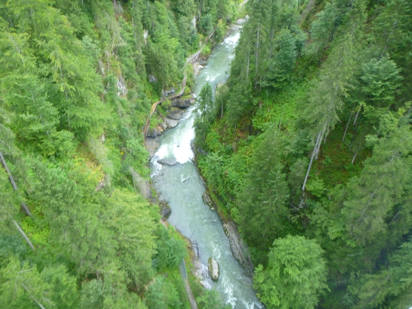 Es geht auf Asphalt abwärts. Außerschwende wird durchlaufen. Auf einer hohen Brücke queren wir die Breitach. Der Blick hinab ins Breitachtal ist beeindruckend. Auf der anderen Talseite heißt es in Unterwestegg aufsteigen.