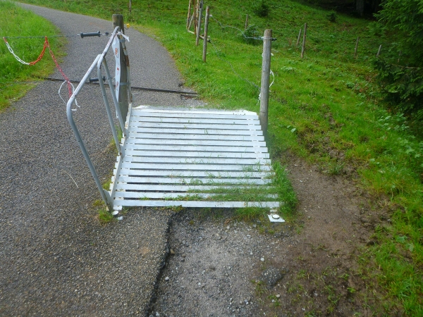 Kurz vor Km 40 verlassen wir Österreich. In Deutschland geht es weiter. Die Söllereckbahn taucht auf und ebenso Peter. Er muntert mich auf. Ich kann seinen Zuspruch gut gebrauchen. Der lange Aufstieg hat mich doch arg gebeutelt. Frisch sein und voller Kraft, ist was anderes.