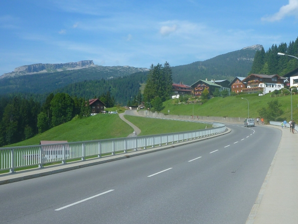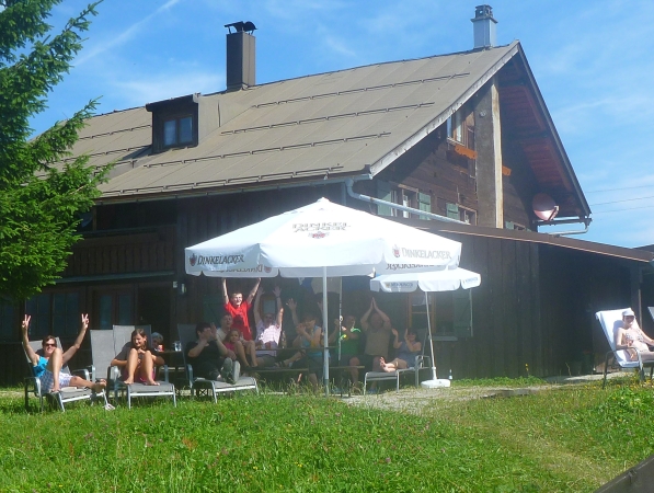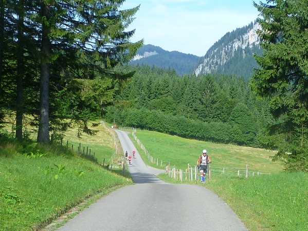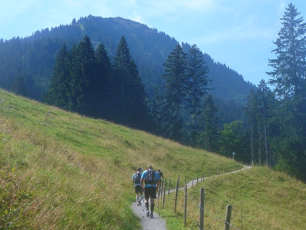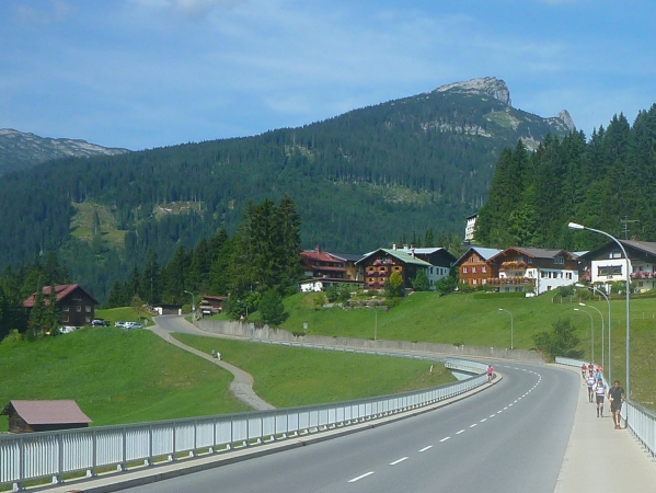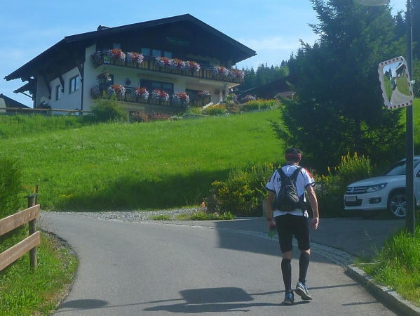Nach Km 30 liegt das Kleinwalsertal vor uns. Im Wald weist ein Schild darauf hin, dass wir uns für eine Weile in der Republik Österreich befinden. Der Gasthof Hörnlepass bietet uns wieder eine Vollverpflegung mit allerlei Köstlichkeiten. Ich bin immer froh über diese Unterbrechungen und greife gerne zu.