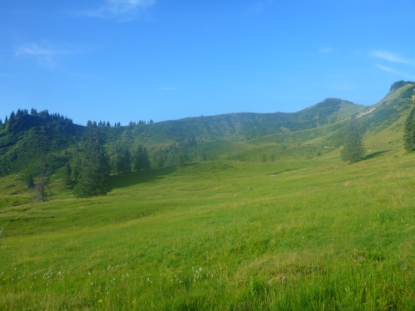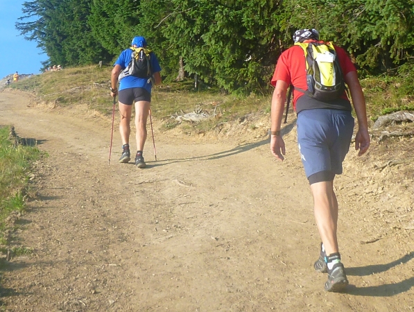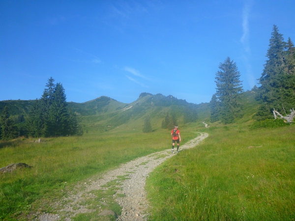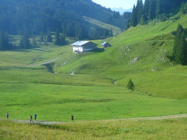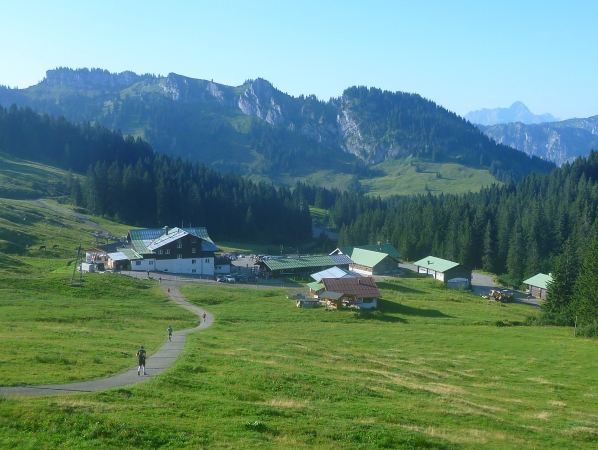 Zum Hörnlepass konnte man sich Wechselkleidung bringen lassen. Ich hab darauf verzichtet und laufe nach der Labung weiter ins Kleinwalsertal. In schönster Sonne mit phantastischen Ausblicken in die Bergwelt geht es nach Riezlern.