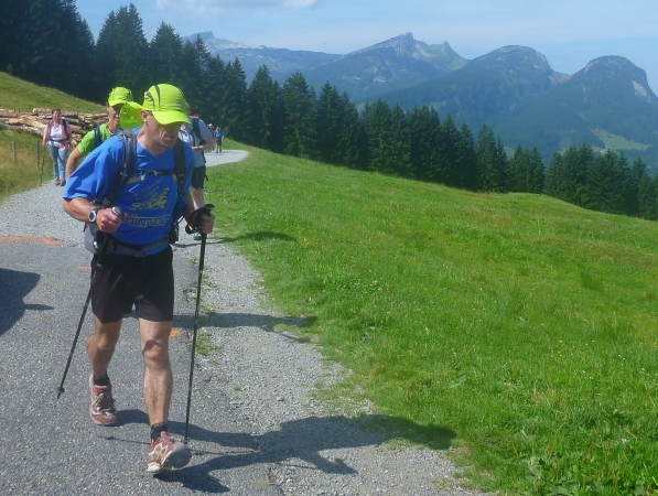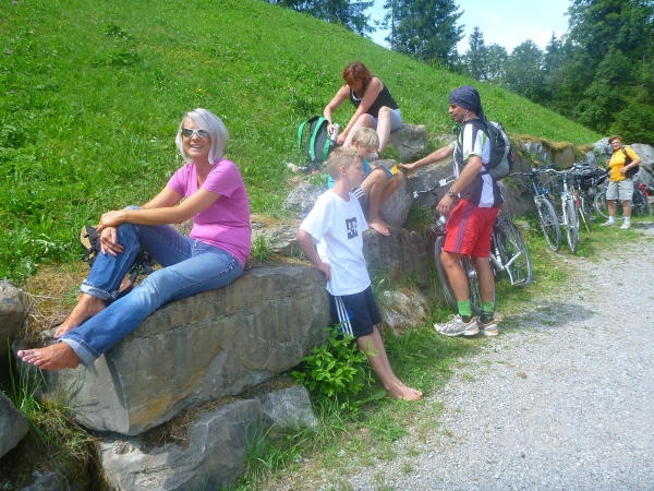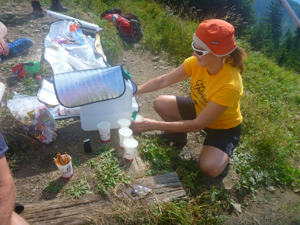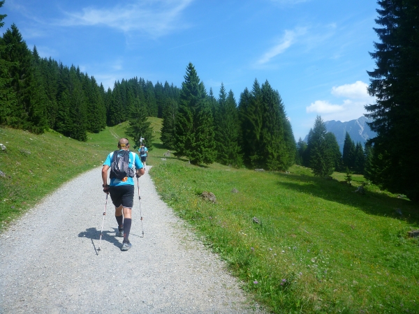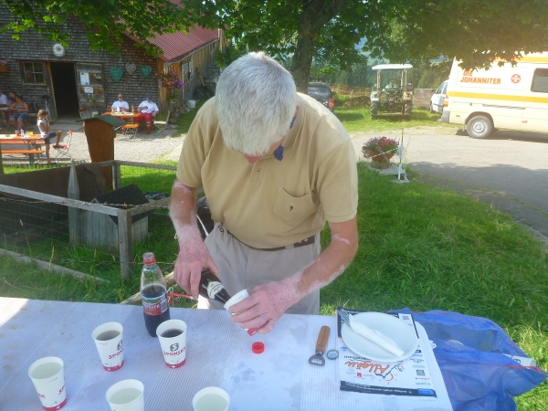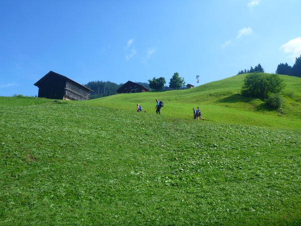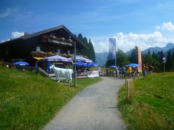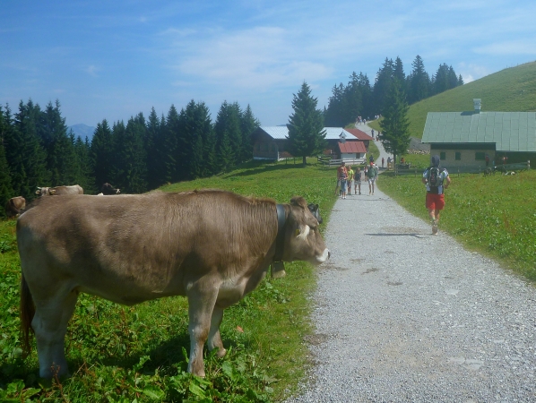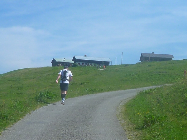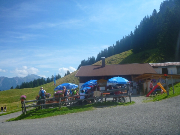 Am Ende Wallraffweges passieren wir die Gaisalpe-Kapelle und nehmen den Anstieg zur Gaisalpe in Angriff. Kurz, aber heftig. An der Gaisalpe werden wir wieder mit Getränken versorgt. Ich widerstehe der Versuchung, mich unter die Bäume zu setzen und im Schatten eine kühle Buttermilch zu trinken.