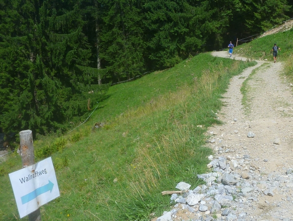 Wieder geht es aufwärts. Allerdings haben wir nun etliche Passagen mit angenehmem Schatten. Wir laufen von der Arena den unterhalb des Rubihorns verlaufenen Wallraffweg zur Gaisalpe.