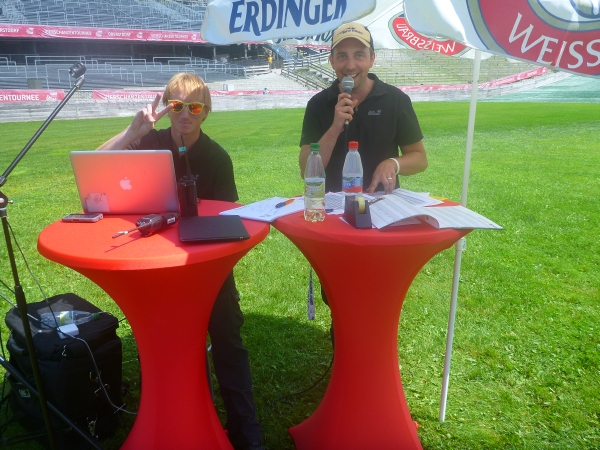 Ein Sprecher begrüßt jeden in die Arena einlaufenden Läufer mit Namen. Leider sind auf den Rängen keine Zuschauer wie beim Weltcupskispringen, aber die Stimmung ist trotzdem gigantisch. Ich bin total beeindruckt und habe Gänsehaut.