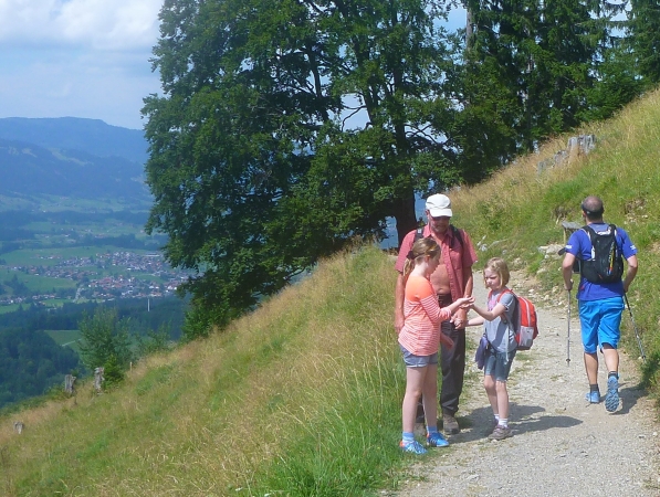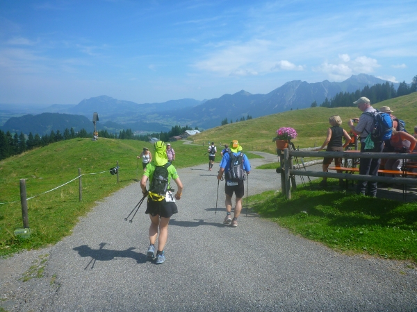 Der Weg ist benannt nach Wallraff von Köln, ehemaliger Oberbürgermeister von Köln sowie Reichstagspräsident. Er war oft in Oberstdorf und regte die Anlage des Höhenweges an. Immer wieder bieten sich uns schöne Ausblicke auf das Illertal und die gegenüberliegenden Berge, auf denen wir uns vor Stunden bereits getummelt hatten.