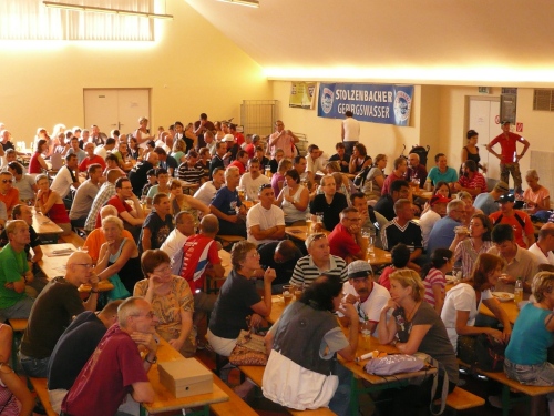 Am Outlet ist schon reges Treiben zu beobachten. Viele lassen sich unter dem Startbogen fotografieren. Mein Vorschlag, das ganze noch im Ziel zu wiederholen, so als Vorher-Nachher-Show, kommt nicht bei jedem an. Aber Zielbilder sind halt Futter für den Fotografen, da zeigt sich die ganze Spannbreite der Wettkampfanstrengung im Gesicht. Wir werden ja sehen.