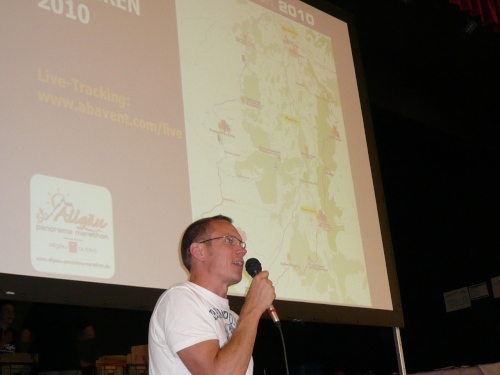 Die Startnummernabholung ist wieder in der Markthalle eingerichtet. Für eine kleine Läufermesse wird die Freifläche vor der Halle benutzt. Im Gebäude findet zudem die Nudelparty statt und auch die Wettkampfbesprechung. So was kennt man eigentlich nur von Triathlonveranstaltungen. Hier ist es aber gerade für die Trailer sehr informativ und auch wir Marathonis erhalten wertvolle Tipps für die morgigen Rennen.