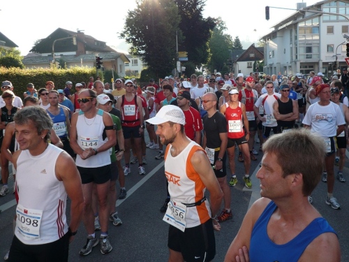 Am nächsten Morgen ist richtiges Sonntagswetter. Kein Wölkchen am Himmel und abgekühlt hat es in der Nacht fast kaum. Lediglich die starke Taubildung ist ein erstes Zeichen, dass der Herbst vor der Tür steht. Zweckmäßig lassen die meisten Teilnehmer ihr Gefährt am Wonnemar stehen. Dort stehen genügend Parkplätze bereit. Die 800 Meter zum Startgelände am Allgäu-Outlet dienen dann als Einlaufstrecke oder einfach als Spazierweg. Einlaufen kann man immer noch auf dem langen Kanten. Ein Rücktransport der Kleidung vom Start zum Ziel ist möglich.
