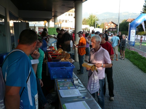 Bei der Startnummernausgabe zeigt sich die Orga überhaupt nicht knauserig: Funktionsshirt, Pflegeprodukte für Füße und Körper, alles eingepackt in einem Umhängebeutel. Dazu Gutschein für die Nudelparty und ein wenig Werbung. Wer noch ein Schnäppchen im Allgäu-Outlet machen will, unter Vorlage der Startnummer gibt es am Wochenende 20 Prozent Rabatt. Und für das Startgeld ist auch der Eintritt ins Wonnemar gratis.