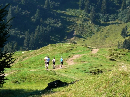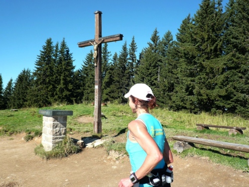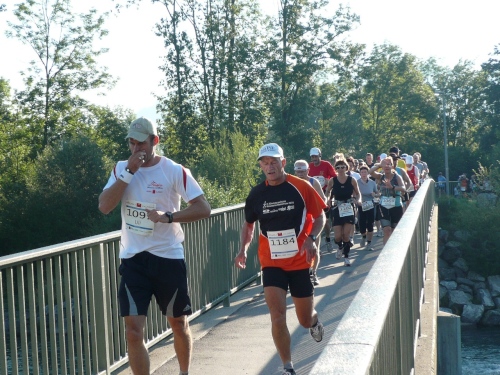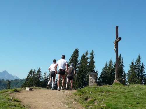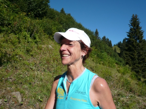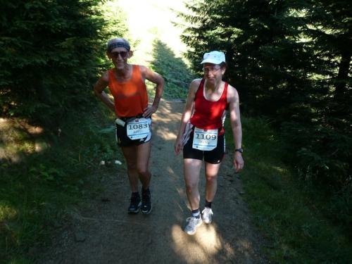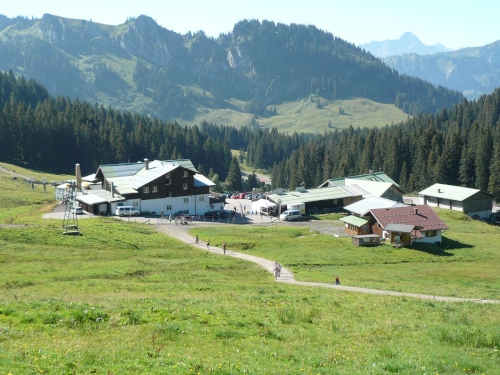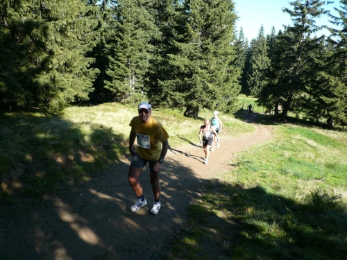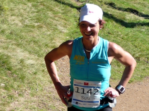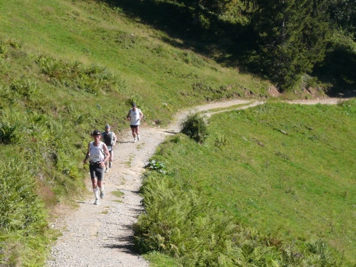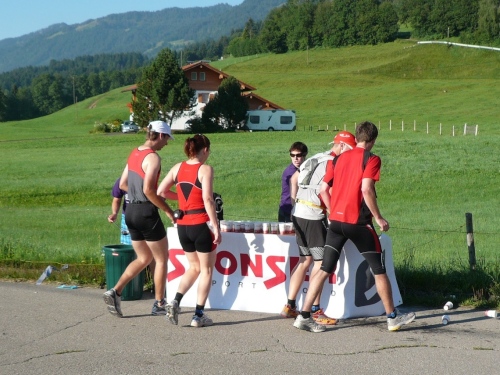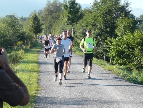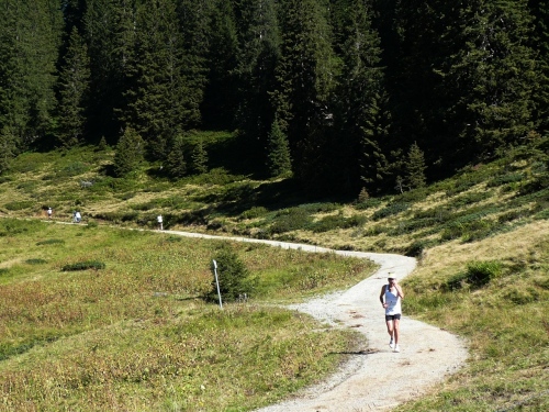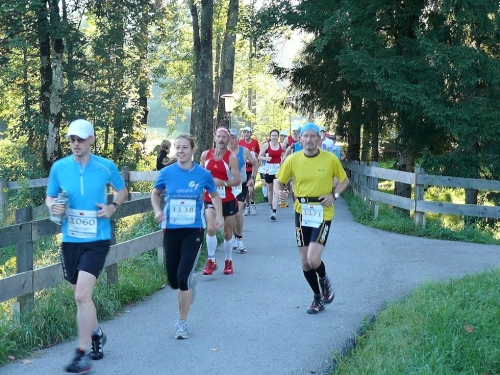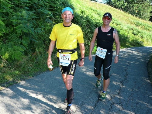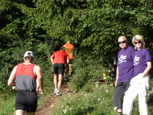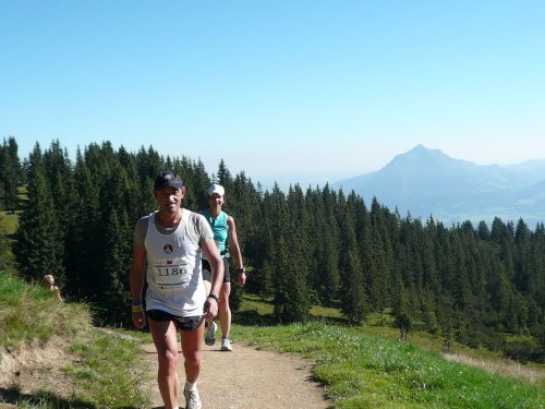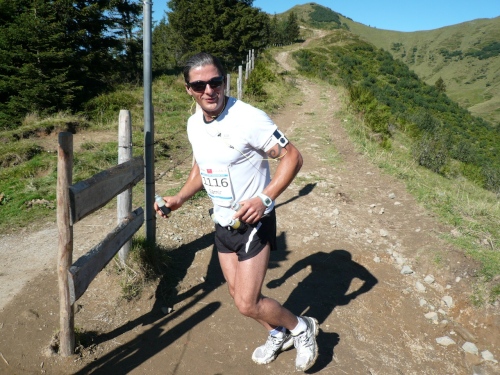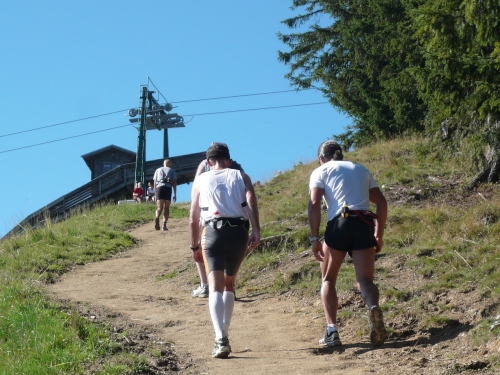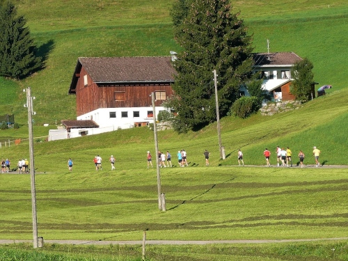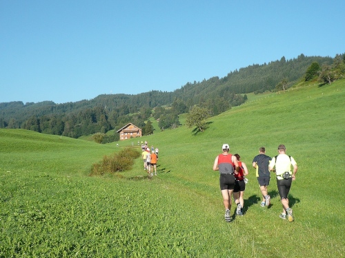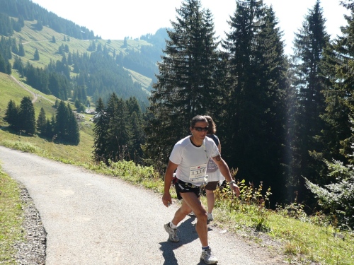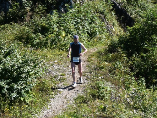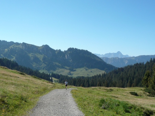 Auf meiner Höhe, mal vornedran, mal knapp dahinter läuft ein Pärchen. Petra Neumann und Jens Jäger haben ihren Bergurlaub im Zillertal mit dem heutigen Marathon gut abgeschlossen. Gut trainiert dürften da beide schon sein. Wir gewinnen jetzt schon viele Höhenmeter, die Aussicht auf Sonthofen, Immenstadt und in Richtung Oberstdorf ist herrlich. Am gegenüberliegenden Grünten lässt sich unsere Höhe gut einschätzen.