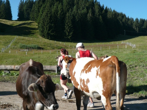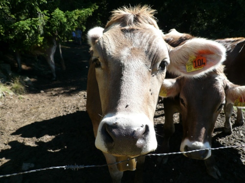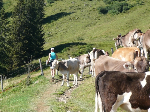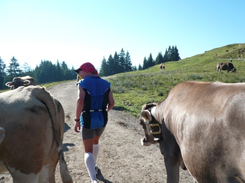Immer wieder stehen Kühe am oder gar auf dem Weg. Einige Läufer haben da wohl Probleme vorbeizukommen. Ein Wort für die Rindviecher oder ein Kraulen am Kopf, dann kann man getrost passieren.