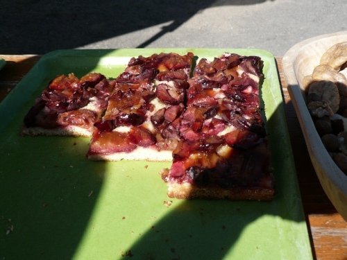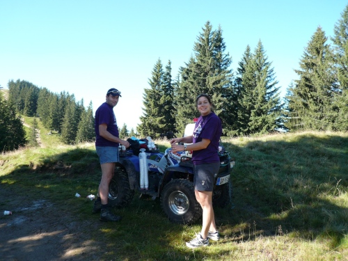 Kilometerschild acht, es ist übrigens jeder Kilometer markiert, die nächste V-Stelle kommt nach weiteren wenigen Minuten bei der Ofterschwanger Bahn. Neben Getränken werden uns schon Bananen und Melonenstücke dargereicht. An einer Karte kann ich erkennen, dass wir schon auf einer Höhe von rund 1400 Metern sind. Damit ist schon das Gros der Steigungen geschafft.