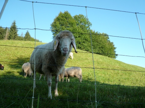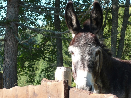 Das steile Stück endet, es geht kurz durch eine Wiese und dann können wir uns ein wenig auf der folgenden Teerstraße erholen. Ich kann dann Mario Peschke überholen, der wieder einen Schnellstart hingelegt hat. „Und dann kriege ich wieder die Quittung!“ So stellt er fachkundig fest. Zuletzt war er beim Zugspitzlauf für m4y unterwegs. Ein Esel spitzt die Ohren in einem Pferch, als ich ihm leise pfeife.