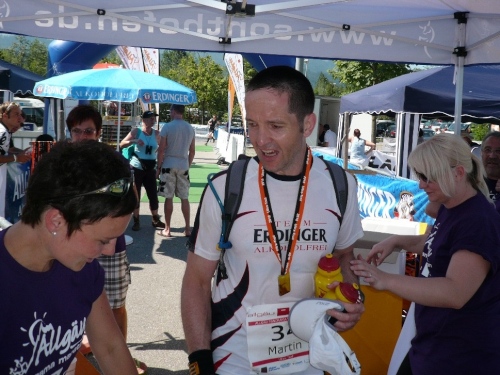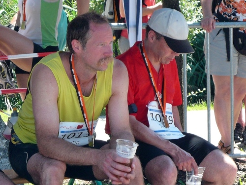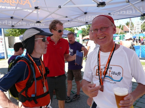 Meine Zeit, 4.53 Stunden ist in Ordnung, ich habe dafür auch jede Menge Bildmaterial gesammelt. Drei Bierchen vom oberbayerischen Bierbrauer mit dem Autokennzeichen ED werden vernichtet. Gespräche mit Läufern haben dann ergeben, dass die heutigen Bedingungen wohl schwerer als 2009 waren. Aber, und da stehe ich wohl nicht allein da, lieber ist es heiß und wir müssen saufen wie die Löcher als dass es kalt und regnerisch wäre.