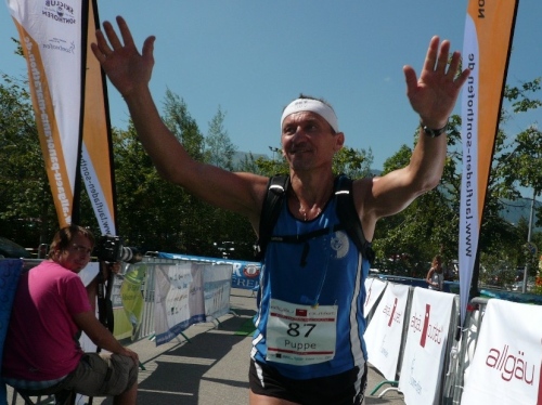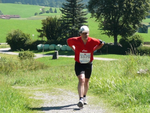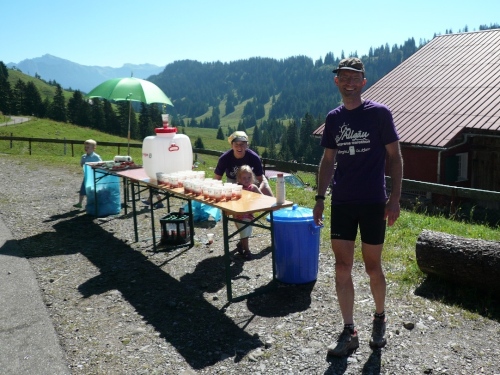 Der Abstieg nach Grasgehren ist kurzzeitig steil, aber unten wartet dann eine gigantische V-Stelle mit allem, was man erwartet. Gel, Iso, Wasser, Schmalzbrote und eine schwäbische Spezialität, Zwetschgendatschi. Doch halt, letztes Jahr gab’s noch Weissbier. Das haben heute die Helfer selbst getrunken, vermute ich und liege verkehrt, als ich nachfrage. Mit vollem Ranzen mache ich mich weiter.