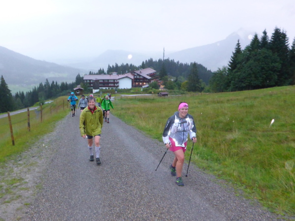 Kurz vor 6 Uhr am nächsten Morgen sind gut 300 Sportler beim Startgelände am Allgäu Outlet im Herzen von Sonthofen versammelt. Doch der Startbogen auf der Straße bleibt verwaist. Die Ultras haben sich in das Zelt und unter die Vordächer verkrochen. Es regnet in Strömen und es ist sch... kalt. Bereits hier trennt sich die Spreu vom Weizen: Die einen in kurzer Hose und Shirt prophezeien das Ende des Regens noch vor dem Startschuss, die anderen in Matschhose und Regenmantel rechnen mit Dauerregen.