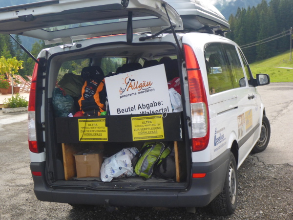 Ich komme gut voran und die Wanderer machen das Laufen kurzweilig. Ich genieße die Landschaft. Links unten liegt das Tal und vor mir bietet sich ein weiter Blick. Schon bin ich an der Getränkestelle Söllereckbahn bei km 42. Die freundliche Helferin meint, dass der Cut-off in Oberstdorf kein Problem sein dürfte. Die folgenden 8 km führen tendenziell bergab.