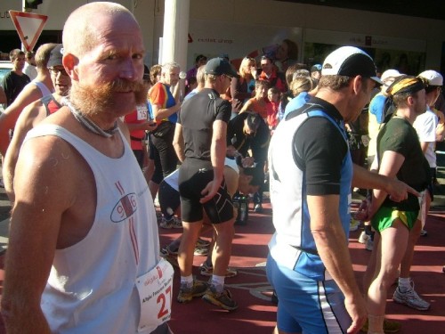Gleich ist es neun Uhr, unsere Startzeit. Dem Vorschlag, die Startzeit eine Stunde vorzulegen, ist man nachgekommen, nachdem es 2007 um die Mittagszeit gut warm geworden war. Heute strahlt der Planet vom fast makellosen Himmel. Es ist mit rund zehn Grad etwas kühl, aber die Laufbedingungen sind perfekt. Ich schätze, dass sich die Siegerzeiten deutlich verbessern werden.