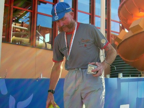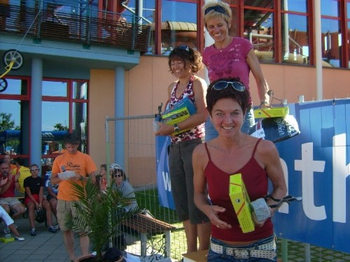 Später erhole ich mich im Wonnemar. Glück habe ich danach beim Kuchen, wo ich das vorletzte Stück ergattere. „Da musst Du Dich schicken, wennst das letzte Stückchen willst,“ sage ich zur Petra, die von ihrem Wettkampf als Zweite in ihrer Klasse schwärmt. Vielleicht kann ich sie mal zu einem Bergmarathon mitschleifen.