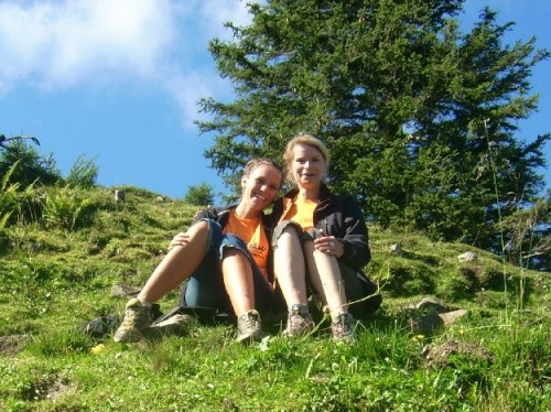 Links unterhalb sehen wir bereits das Bolgental, unseren gefälligen Abstieg. Hinterhalb des Berghauses sammeln wir noch einige Meter und können auch verpflegen. Kurz vor dem Abstieg sitzen zwei Helfer bei Bier auf einer Matratze. Der eine braucht no an Schmeizler. Ja, und wenn der Biergenuss seine Wirkung zeigt, dann brauchen sich die beiden nur noch umfallen lassen.