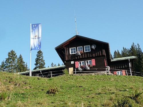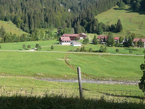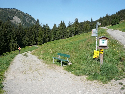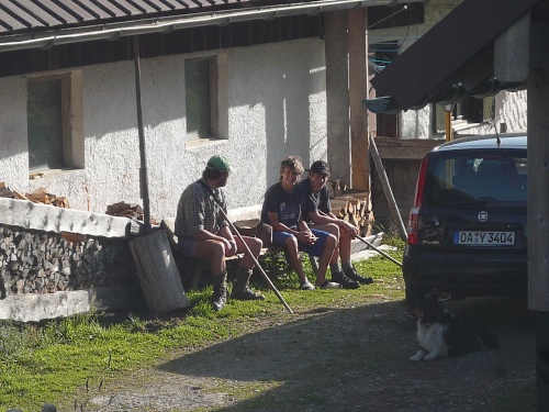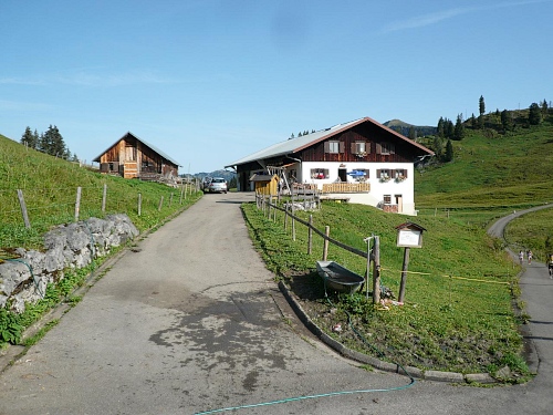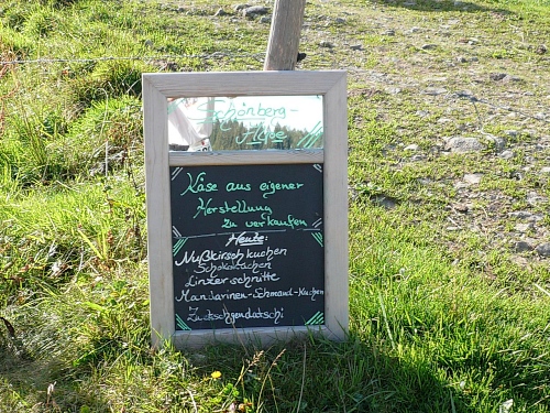 An der Schönberg-Alpe könnte ich meinen Hunger nach einem Zwetschgendatschi stillen. Nur, ich hab kein Geld dabei und die Uhr läuft ja weiter. Ein Bergwanderer kann nicht nur hier, sondern auf vielen anderen Alpen einkehren und gleich Bergkäse mitnehmen. Die sind lecker, auch wenn der eine oder andere eine rassigen Duft verbreitet. So wie der Weißlacker, ein Schnittkäse, der nur hier produziert wird. Zum Bier und zur Brezn schmeckt der am besten.