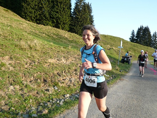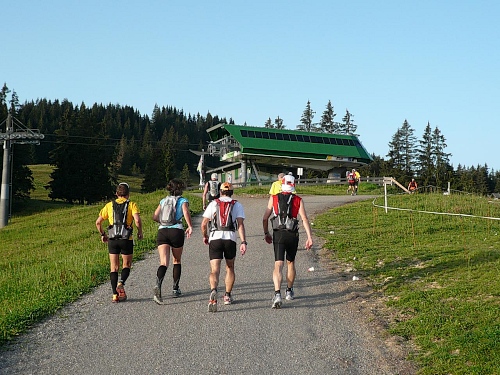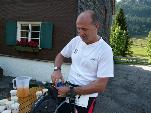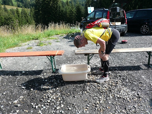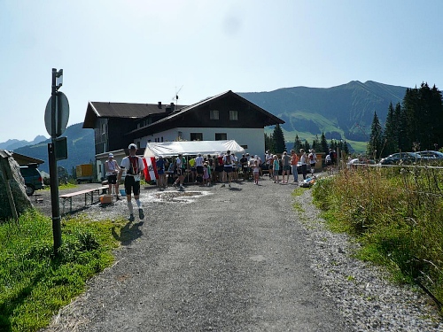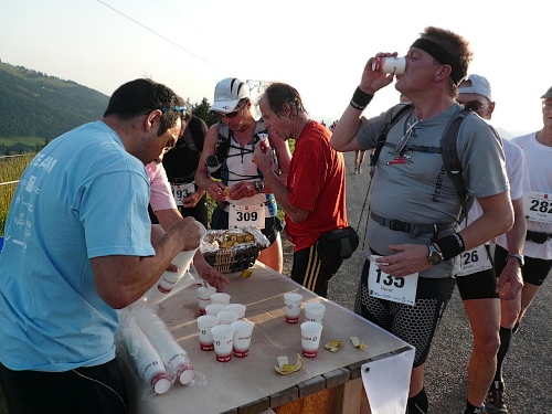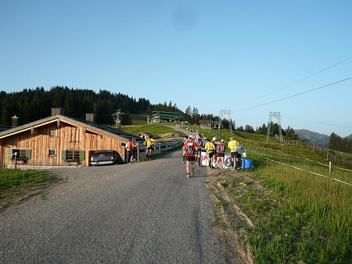 An der Grasgehrenhütte ist die erste Hauptverpflegungsstelle. Hier vermisse ich den guten Zwetschgendatschi, den es letztes Jahr gab. Aber mit Bananen, Äpfeln und vielen weiteren Leckereien brauchen wir nicht zu hungern. Dafür haben die Helfer zu rödeln, denn die Trailer kommen wie an einer Wäscheleine einer nach den anderen angelaufen. Kurz nach meinem Weiterlaufen „druckt’s mir a Koppala naus“. Das Cola ist schuld.