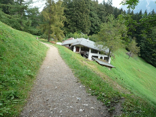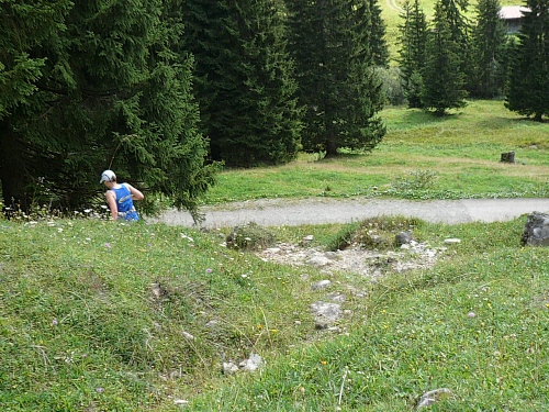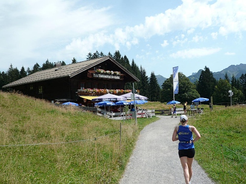 Die Umleitung ist zwar ein wenig länger (weniger als ein Kilometer), aber dafür flüssiger zu belaufen und führt an der Dinigörgen-Alpe vorbei.