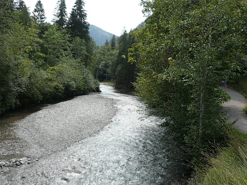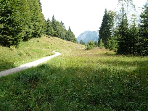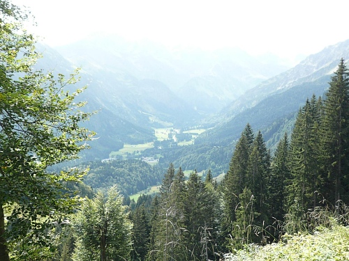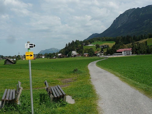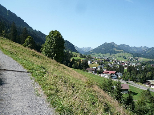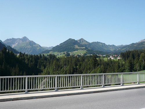 Ein langes Asphaltband lasst uns gefällig hinunter nach Riezlern traben. Jetzt sind wir im Kleinwalsertal. Eine direkte Straßenverbindung nach Austria gibt es nicht. Entweder mit Mountainbike oder mit dem Lauf- und Wanderschuh kann man ins restliche Österreich gelangen.
