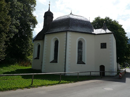 Wir verlassen den Wald und sind in der Talebene angekommen. Nach Norden blickend ist Oberstdorf zu sehen. Schleierwolken verringern kurz am Himmel die Sonneneinstrahlung. Durch die frisch gemähten Wiesen geht es auf St. Loretto zu. Das sakrale Gebäude ist schon eine Zeitlang zu sehen. Gerne würde ich einen Blick hineinwerfen.