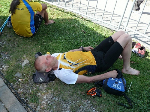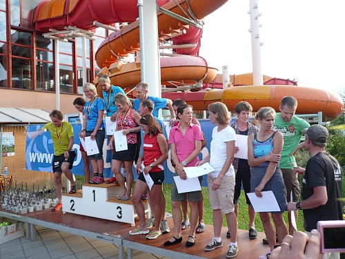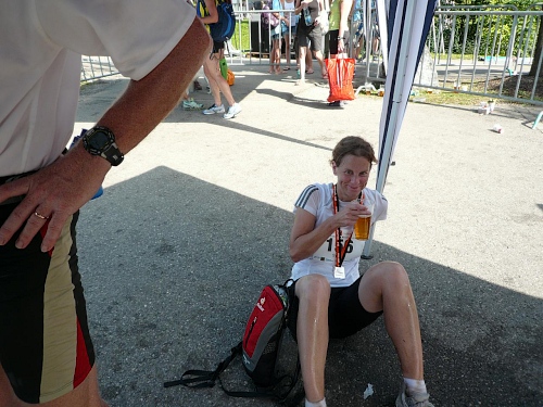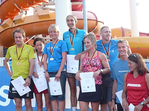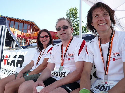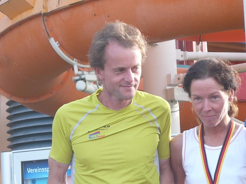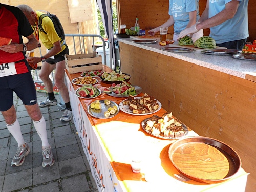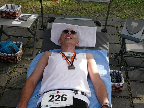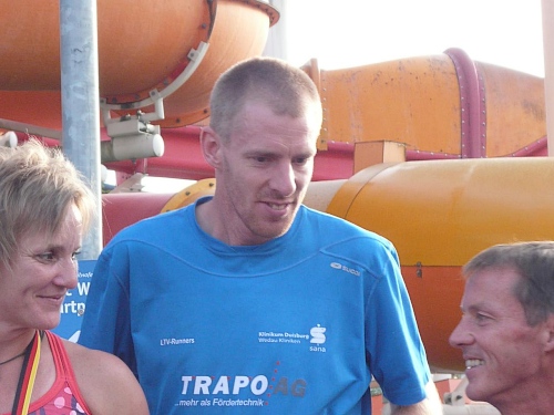 Im Ziel warten dann ein Obstbuffet und viele weitere leckere Sachen. 1,50 Maßeinheiten des Erdinger Getränkes rauscht meine Gurgel hinunter, bevor ich mich an feste Nahrung heranmache. Ja, relaxen können alle Teilnehmer im Wonnemar. Eine schwäbischen Ausspruch habe ich auch noch auf Lager für das abschließende Urteil der Organisation: „Net gschimpft isch globt gnua!“ Geht an die Adresse von Axel und seinen Helfern. Habt Ihr prima gemacht.
