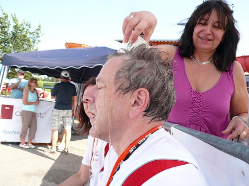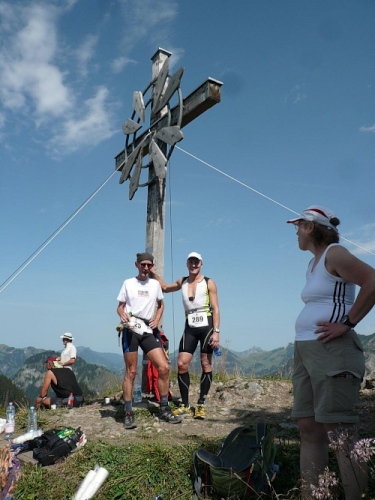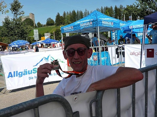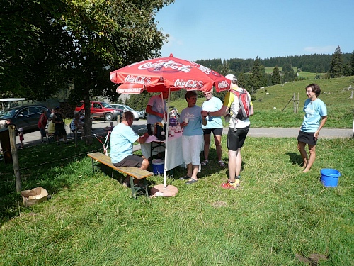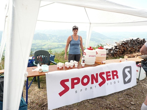 Dann höre ich erste Jodler und Applaus. Da ist er, der Sonnenkopf. Kurz vor dem Gipfel gibt es noch leckere fruchtige Blaubeeren. „Der hat no Zeit für Beera brocka“, höre ich von oben. Dann bringt man mir einen Becher kühles Wasser. Auch dafür Dank, denn diese Wasserstelle wurde kurzfristig eingerichtet. Die Helfer haben das Aqua hochgeschleppt.