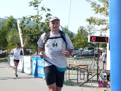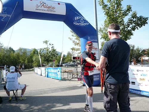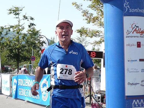 Zusammen mit Walter Unger aus Krumbach mache ich mich auf das letzte Wegstück, das die ärgste Steigung zu biegen hat. Zehn Kilometer und nochmals rund 1000 Höhenmeter von Oberstdorf aus gerechnet liegen vor uns. Vergesst die Rechnerei, zehn Kilometer kann ich in einer Stunde gemütlich laufen. Die eine Stunde für zehn Kilometer bis zum Sonnenkopf (1712 Meter) könnt ihr getrost mit einer Zahl größer eins multiplizieren.