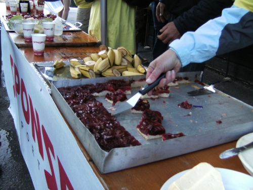 Dann kommt bereits die erste Wasserstelle. Es gibt hier sogar noch Isogetränke. Einen Becher hinter die Binde, dann mache ich mich auf den weiteren Weg.