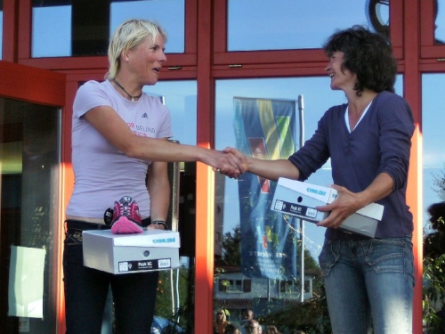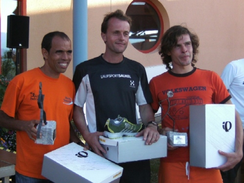Meine Startnummer erhalte ich in wenigen Augenblicken. Als Ausrüstung für den Ultra werden eine Pfeife und eine Alu-Rettungsdecke ausgegeben, dazu erhalten alle ein Funktionsshirt und diverse Schmiermittel für die Beine. Für den Trail wird das Mitführen eines Handys vorgeschrieben, dazu sollte jeder Getränke und ggf. ein paar Gels und Riegel mitführen. Denn die Versorgung wird als semi-aided beschrieben. Es gibt also ein paar Hauptversorgungsstellen mit vollem Programm und dazwischen etwa alle sieben Kilometer Wasser-/Iso-Stellen. Und in den zahlreichen langen Anstiegen können sieben Kilometer verdammt lang sein, wenn man nichts zu trinken bekommt.