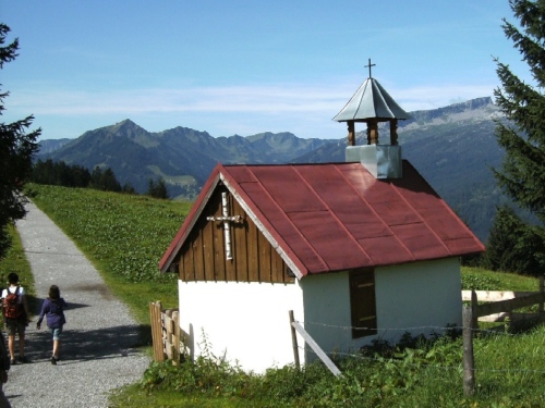 Bei einer Alpe sehe ich einen schönen Holzbrunnen, wo einer sich Wasser über die Birne schüttet. Alte Bauernhäuser sind zu sehen. Interessiert zeigt sich auch das Allgäuer Braunvieh, als ich mal wieder zum Fotoschuss stehen bleibe. „Die Zeit muss sein“, höre ich von einem Wanderer, als ich an einer Bergkapelle stehen bleibe. Je näher wir dem Söllereck kommen, desto mehr Touristen sind unterwegs.