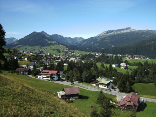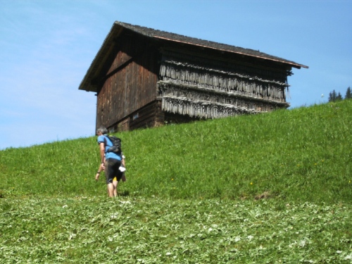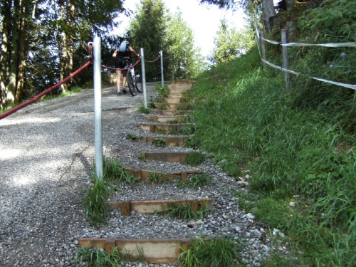 Später wechseln wir auf einer Hauptstraße die Talseite im Kleinwalsertal und kommen nach Westegg. Es folgt der zweite Hauptanstieg zum Söllereck. Zuerst ein Anstieg auf Asphalt noch im Dorf, dann kommen ein paar unbequeme Treppen.