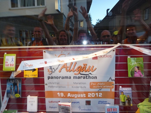 Über die Beiden kommt natürlich der Hauptsponsor, das Allgäu Outlet, ins Boot. Ein Sponsor, der nicht mit einer eigenen, aufgeregten und lahmen Firmenstaffel, sondern mit echten Schnäppchen und Service glänzt. Da niemand mehr Platz für ein Finisher-Shirt hat, ist die Freude über den wirklich edlen Laufrucksack, gefüllt mit Gaben anderer Sponsoren, groß.