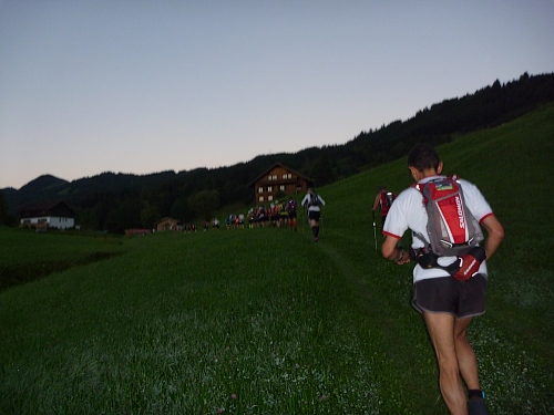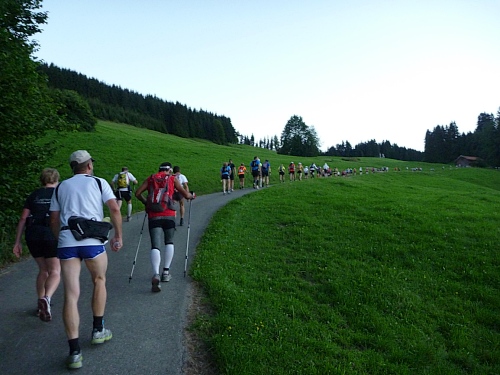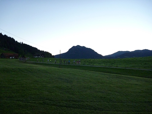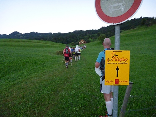 Es ist noch dunkel, als wir den Weg zum Start am Allgäu Outlet in der Innenstadt (6 Uhr) antreten. Jeder hat seine Pflichtausrüstung auf dem Rücken. Die wird unterwegs von Streckenposten irgendwann kontrolliert, denn in den Bergen ist es gefährlich.