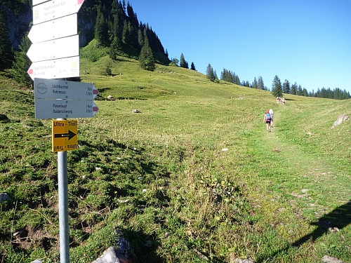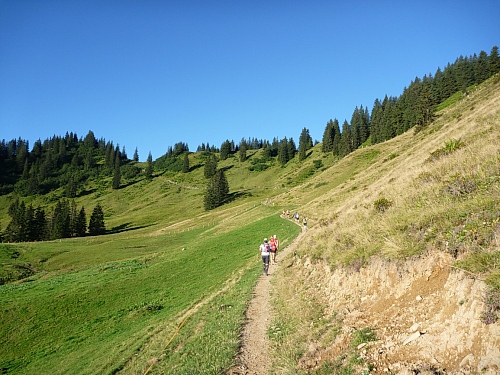 Unterhalb Rangiswanger Horn (1615) vorbei, weiter hoch, km 10  ist erreicht. Weiter zum Gipfel des Weiherkopfes, immer weiter.