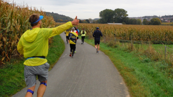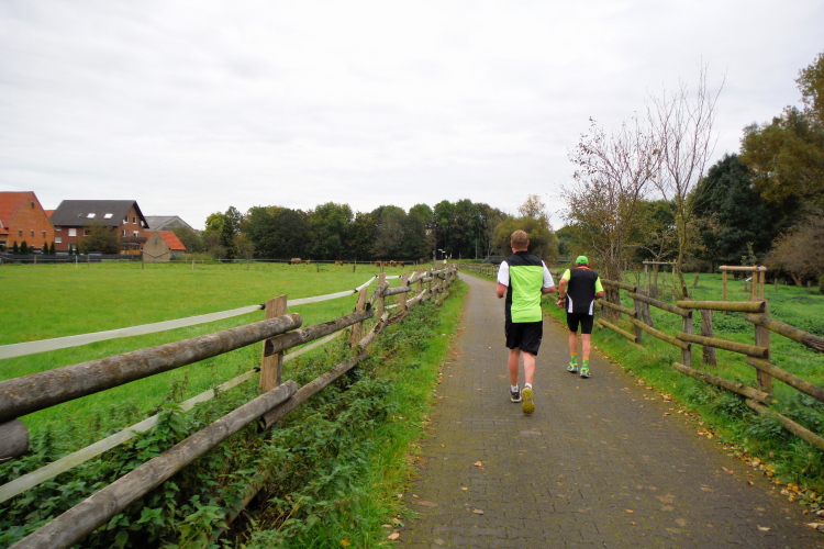 Kurz danach verlasse ich noch im Schoss meiner Laufgruppe Büren wieder. Es entwickelt sich nach und nach ein anregendes Gespräch mit Daokun. Als Chinese verleiht er dem Lauf ein internationales Flair. Da er jedoch schon lange in Wewer lebt, spricht er perfekt Deutsch und geht glatt als Einheimischer durch. Heute bewältigt er zum zweiten Mal die magische Marathondistanz.