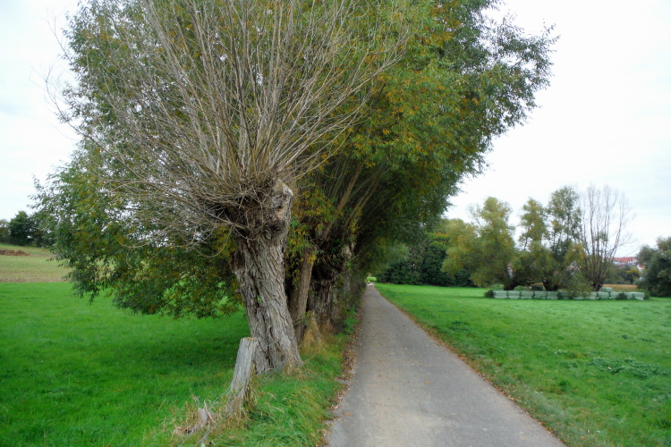 Mehr als 25 KM liegen bereits hinter uns, als wir das alte örtliche Bahnhofsgebäude passieren. Genutzt wird es heute, wie viele andere ländliche Bahnhöfe, als Wohngebäude. Aber auch die schönen alten Höfe beeindrucken mich, bevor es wieder hinaus in die Natur geht. Auf dem Weg nach Alfen grasen links friedlich Schafe auf der Wiese. An einer Reihe von Weiden linker Hand laufen Adalbert und Lukas zu mir auf. Ich nutze die Gelegenheit und schließe mich ihnen an, auch wenn ich mich dadurch nach 28 gemeinsamen Kilometern von Daokun verabschieden muss. An Holzzäunen vorbei erreiche ich die hiesige Verpflegungsstation. Die Cola bringt neue Energie. Einen kleinen Umweg bringt die nächste Straßenquerung, denn vorschriftsmäßig wird der Zebrastreifen genutzt. Adalbert schickt uns erst einmal voraus.