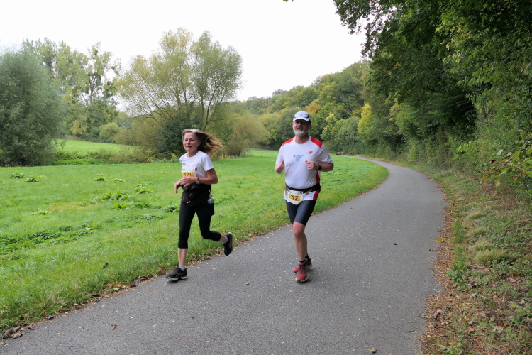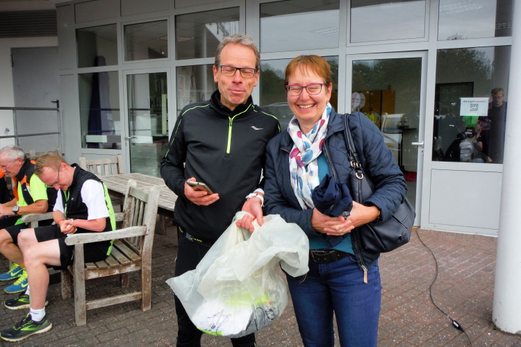 Gedanklich bin ich leichtfüßig unterwegs, die Realität sieht etwas anders aus. Aber da ich Silke schon sehen kann, laufe ich natürlich noch durchs Ziel, direkt in Silkes Arme und freue mich über das Finish nach dieser schönen Strecke.