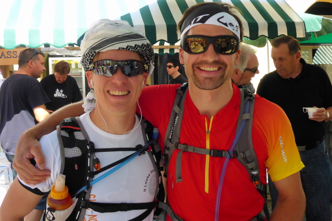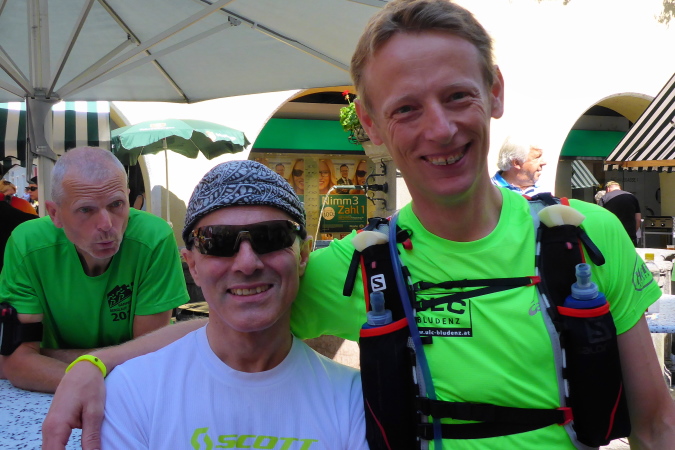 Dort treffe ich den besten deutschen Trailrunner: Martin Schedler, vor vier Tagen noch bei der Trail-WM in Annecy. Ich verstehe, er will in kühlen Tälern ein wenig auslaufen, oder?