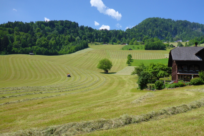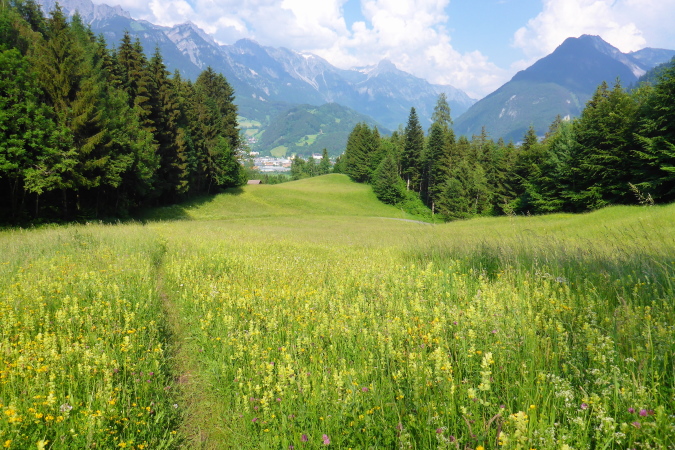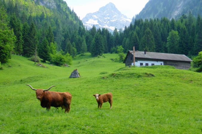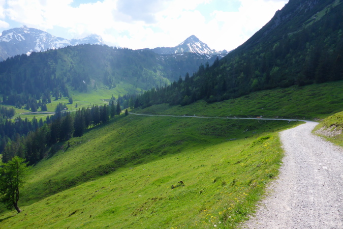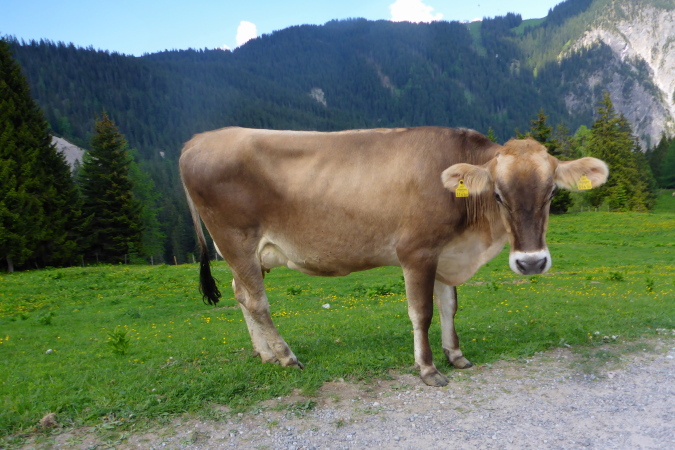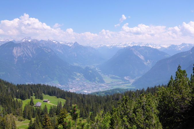 Das romantisch Tal nennt sich Brandnertal, ist nicht nach der Ex vom Schweini benannt, bezaubert den Läufer aber genauso, wie ebendiese Sarah. Ich habe Christa vor mir. Die Laufstrecke geht viel zu lange durch die Stadt, ich bleibe an Christa dran, bilde mir ein, sie sei Sarah und ich, wenn´s steil wird, schneller als sie. Als ich dann meiner Verpflichtung nachgehe und Fotos von den grünen Wiesen und Tälern schiesse, ist sie weg. Es geht westwärts, eine große Runde entgegen des Uhrzeigersinns.