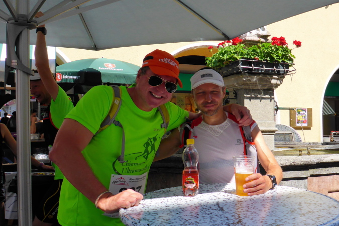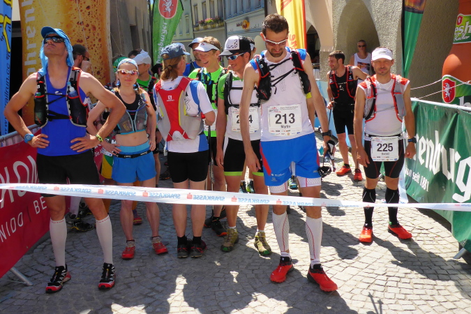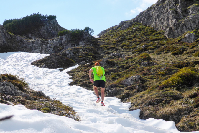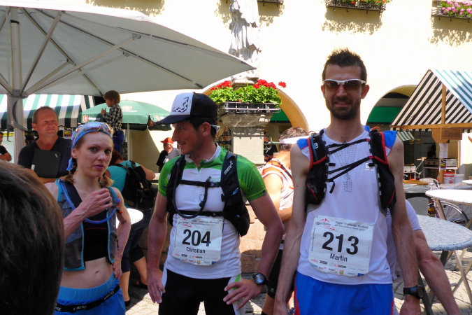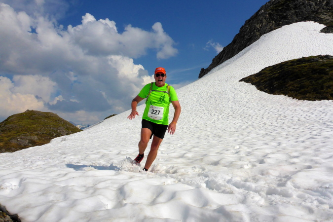 Die Helfer sind glücklich, als ich erkläre, dass ich der Schlußläufer bin. Sie umarmen und herzen mich, als sei ich Barbapapa. „Sag dem Hans, er kann dann zurückkommen!“ Hans ist kein kommerzieller Fotograf, hat sich extra Urlaub genommen, um uns 32 Bekloppte….wir sind doch nur noch 23, also, um 23 Bekloppte zu fotografieren. Das sind dann Momente, wo du als Läufer begreifst, dass du etwas machst, was auch Einheimischen Respekt einflößt! „Pass auf! Lauf nur oberhalb der Schneefelder“ ruft er mir nach.
