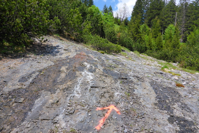 Erstaunlicherweise funkioniert das Handy hier oben: 0043…“hihihi hier ist der Joe, wo geht’s lang?“ Wir haben nett telefoniert und eine Dose Zwiebelmettwurst mit Schwarzbrot später habe ich den Weg. Die Spraymarkierung war auf dem Schnee, der hat sich aber in den letzten Stunden verflüchtigt, und somit auch die Markierung.