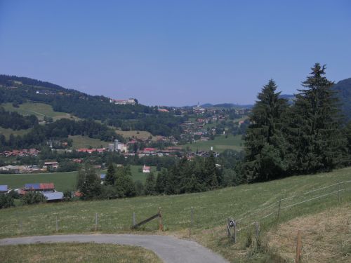 In Weißach verläuft der weitere Rückweg nun anders als der Hinweg. Eine Schleife führt uns nach Bad Rain. Ich muss mich schon zum Laufen zwingen. Im Grunde freue ich mich über jede Steigung die kommt. Dann hab ich ein Alibi zum Gehen. O.k., zwei, drei Meter gehe ich nun die ich normal auch hätte laufen können. In Bad Rain liegen einige wohlgenährte Mitmenschen im Hallenbad, ein Kellner bringt draußen einige halbe Bier zu Gästen und ich laufe weiter. Eine Dusche ist des Läufers Vergnügen hier, die nächste kurze Steigung wartet und ich weiß, es geht nun zurück nach Oberstaufen.