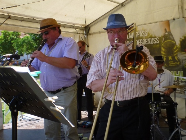 In Geislohe haben wir nicht nur den zweiten der drei Berge bezwungen (100 Höhenmeter auf einem Kilometer Laufstrecke), sondern in der Ortsmitte wartet wieder eine Genussstation, wo uns frische, süße und leckere Striezel, ein Hefegebäck, kredenzt werden. Die meisten Läufer greifen nur bei Wasser und Bananen zu, doch einige wenige nehmen es nicht so bierernst und kehren ein.